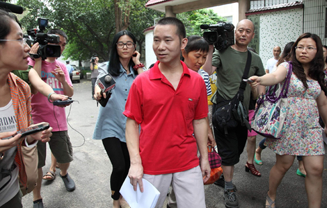 Deng Mingjian walks out of the Panyu District People's Court in Guangzhou, Guangdong province, in this May 30 file photo. Deng, a migrant worker from Sichuan province, was sentenced to three years in prison, suspended for four years, after he admitted assisting in his mother's suicide. [Photo/Provided to China Daily] |