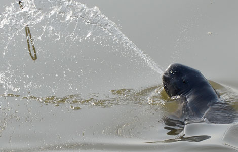 A finless porpoise swims in a natural reserve in Tongling, Anhui province on Dec 4. [Photo/Xinhua] |