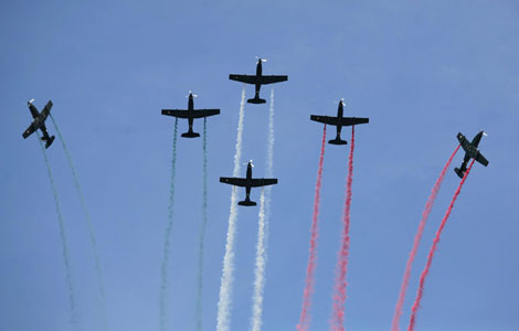 Exuberant performers go through their paces in the Irish step-dancing extravaganza Riverdance at a performance in Beijing in February 2010. Vice-President Xi Jinping will see the show while in Ireland. Zhang Wei / for China Daily |