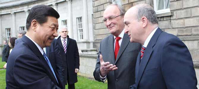 Chinese Vice President Xi Jinping (L) shakes hands with Paddy Burke, chairman of Seanad Eireann, Ireland's upper house of parliament.