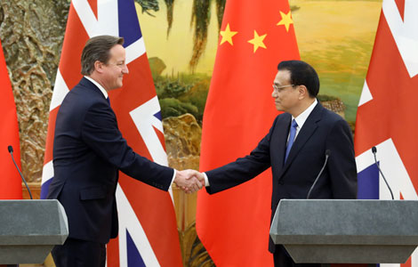 Premier Li Keqiang talks with his Russian counterpart Dmitry Medvedev before the 12th prime ministers' meeting of the Shanghai Cooperation Organization in the Uzbek capital of Tashkent. [Photo/Agencies] |