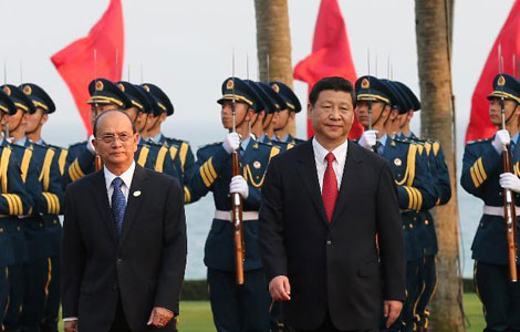 2013-04-06 00:49China and Myanmar reaffirmed they would enhance their economic ties, particularly cooperation on major projects, as President Xi Jinping met with his Myanmar counterpart President U Thein Sein ahead of a regional forum.