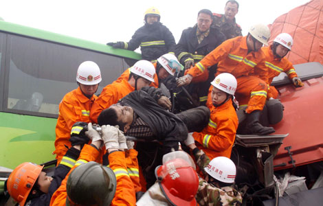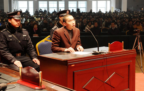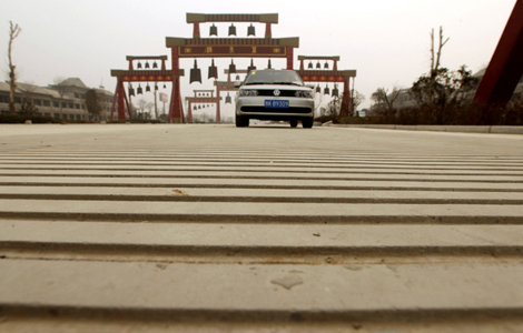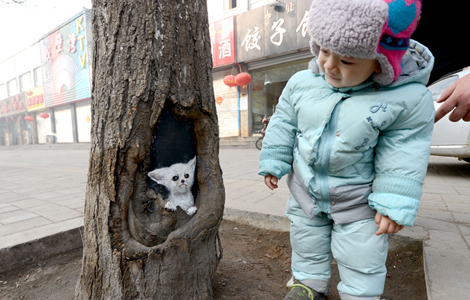 Liang Lina, a 28-year-old CPC branch secretary of Luhe village, walks with students, Feb 25, 2013. [Photo/Xinhua]