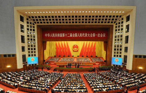 Chen Changzhi presides over the third plenary meeting of the first session of the 12th National People's Congress (NPC) at the Great Hall of the People in Beijing, capital of China, March 10, 2013.[Photo/Xinhua]