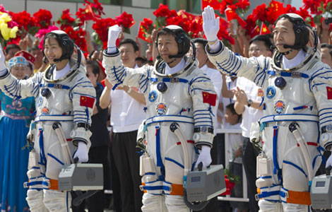 Two front pages of China Daily and a blessing in digital form ended a space trip along with astronauts on the Shenzhou IX mission on Friday.