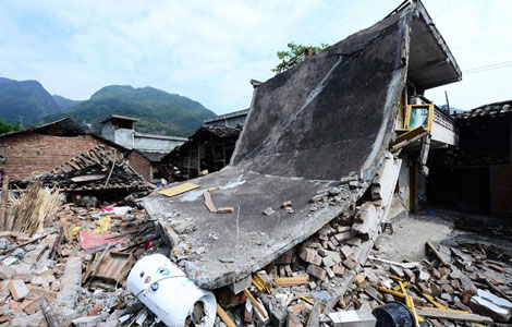 The destroyed house of Wang Mei and her daughter Li Yuanyuan, who were killed in the 7.0-magnitude earthquake in Lushan county of Southwest China's Sichuan province at 8:02 am April 20.