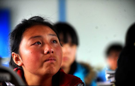 Daping Central Primary School students are back in class in a makeshift classroom in quake-hit Tianquan county, Southwest China's Sichuan province, April 25, 2013.