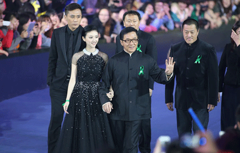 Hong Kong action film star Jackie Chan and other crew members of Police Story 2013 at the closing ceremony of the Beijing International Film Festival on Tuesday.