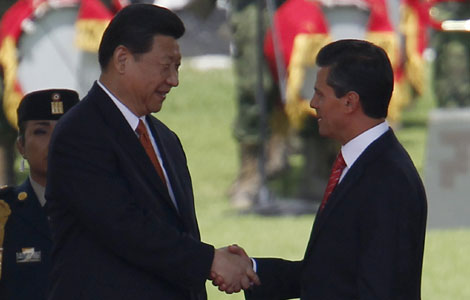 President Xi Jinping met his Mexican counterpart Enrique Pena Nieto Tuesday to discuss bilateral cooperation after arriving earlier in the day for a three-day state visit.