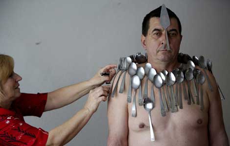 A Belgian boy wearing a panda cap waves Chinese and Belgian flags to welcome a giant panda couple to their new home. [Photo/Xinhua] |