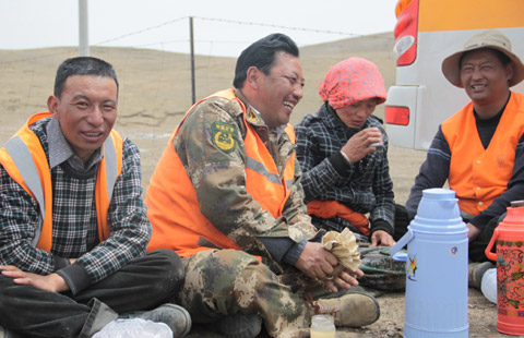 Workers from the Qinghai-Tibet Highway Management Bureau have to maintain and repair nearly 1,200 kilometers of the highway. They always take painkillers with them to relieve headaches caused by high altitudes before heading out the door.