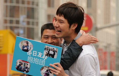 As small as a hug is, it may still warm up the tension between China and Japan, a belief that has motivated six Japanese students studying in Beijing to initiate a hugging activity.
