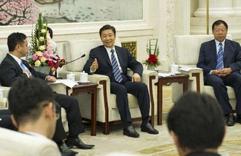 Chinese Vice Premier Wang Yang met with Japanese business leaders on Wednesday to discuss ways of increasing friendly bilateral cooperation.