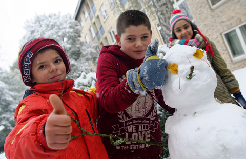 High-rise buildings are partly visible in heavy smog in Rizhao city, East China's Shandong province, making the city look like a mirage, on Sunday. Shandong meteorological observatory Sunday issued a yellow alert for the heavy smog in most parts of the province on the day. [Photo/IC] |