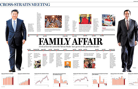 Xi Jinping and Ma Ying-jeou are to meet at 3 pm Saturday at the Shangri-La Hotel in Singapore, marking the first face-to-face exchange and communication between the two leaders across the Taiwan Straits since 1949.