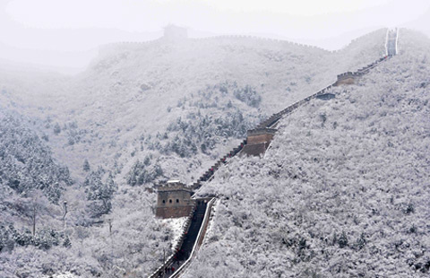 Frontier guards Xin Guoqiang and Chen Sheng take position in an ice bunker to keep watch on illegal immigrants fleeing to Russia in Heihe city, Heilongjiang province, Nov 21. During winter season, temperature in Heihe city can hit as low as minus 30 degrees Celcius. [Photo/IC] |