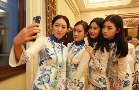 A runner reaches the finish line in a vertical marathon up one of the 300-meter-high towers at Wanda Plaza in Kunming, the capital of Yunnan province, Dec 12, 2015. The event attracted more than 1,000 participants, who raced from the first floor to the 67th floor. [Photo by Hao Yaxin/Asianewsphoto] |