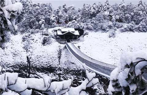 A man takes a photo of the snow fall at Youkong village, Xiuning county, Huangshan city in East China's Anhui province, Jan 25, 2016. The village saw rare ice fall when the temperature went as low as minus 10 degrees Celsius.[Photo/CFP] |
