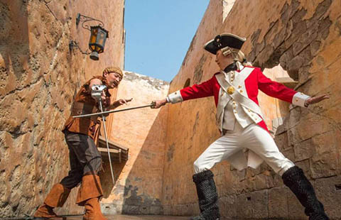 Two characters from Pirates of the Caribbean are featured in this view at Shanghai Disneyland. [Photo/Chinanews.com] |