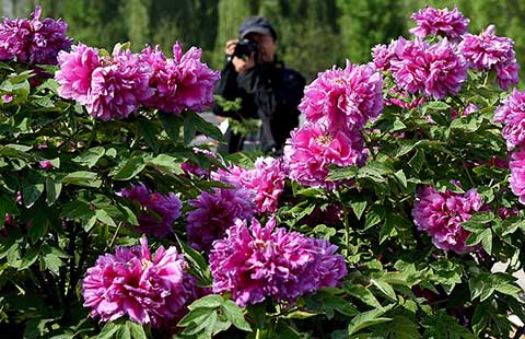 A peony tree is blooming at a park in Luoyang,central China's Henan province on April 18, 2016. [Photo/Xinhua]