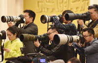 Xie Zhenhua, China's special representative on climate change, takes his seat at a news conference on the sidelines of the two sessions on Monday. KUANG LINHUA/CHINA DAILY |