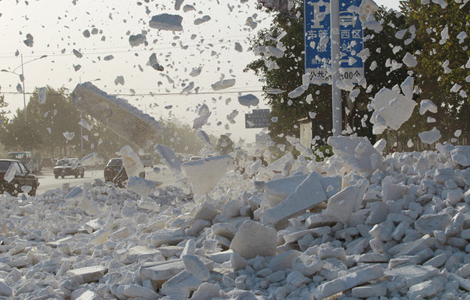 President Hu Jintao, left, shakes hands with Japanese Prime Minister Yasuo Fukuda after they signed a joint statement in Tokyo, the capital of Japan, May 7, 2008. [Photo/Xinhua] |