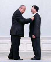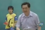 President Hu Jintao plays table tennis with a young Hong Kong player