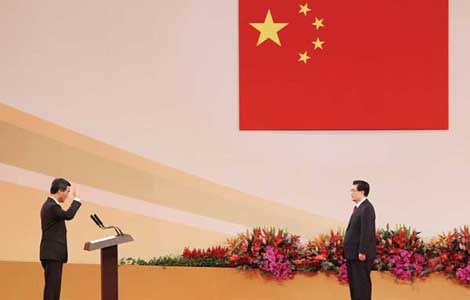 Leung Chun-ying made an inaugural speech Sunday after being sworn in as the fourth-term chief executive of the Hong Kong Special Administrative Region (HKSAR).