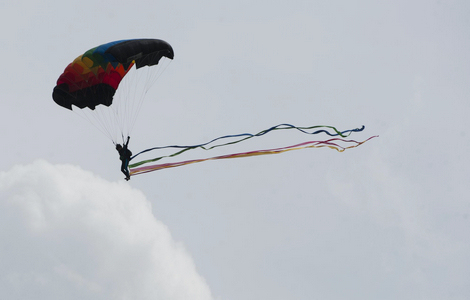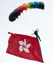 People's Liberation Army soldiers from the 81 Parachute Brigade rehearse a sky display at Shek Kong Barracks in Hong Kong, June 26, 2012.