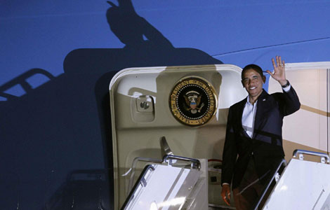 US President Barack Obama on Sunday arrived in Los Cabos, a coastal resort in Mexico, in Air Force One to attend the seventh Leaders' Summit of the Group of Twenty, or G20, which opens Monday.