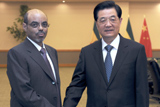 Chinese President Hu Jintao met Sunday in Los Cabos with Ethiopian Prime Minister Meles Zenawi to discuss expansion of all-round cooperation between China and Ethiopia.