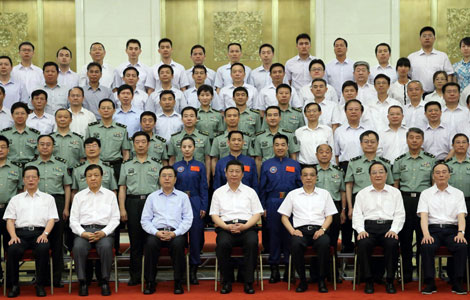 Chinese President Xi Jinping on Friday met astronauts and scientists who participated in the Shenzhou X mission, extending congratulations to the success of the mission.