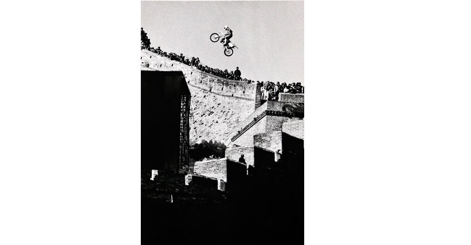 Taiwan stuntman Ko Shou Liang flies over the Great Wall on his motorcycle at the Jinshan Mountain Ridge Section on Nov 15, 1992. He was the first to make the dramatic jump, staking a claim in the Guinness Book of World Records. [Photo by Li Taihang/China Daily]