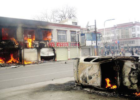Rioters torch shops