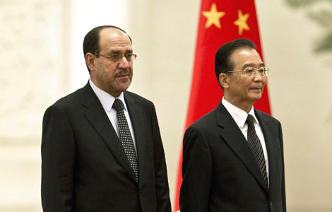 Iraqi Prime Minister Nouri al-Maliki arrived in Beijing Sunday night for his first official visit to China as a guest of his Chinese counterpart Wen Jiabao.