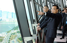 Premier Li Keqiang climbed to the top of Macao Tower on Oct 10 accompanied by Macao’s Chief Executive Chui Sai On.