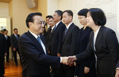 Premier Li Keqiang posed for pictures with local government officials and signed his name in the guestbook during his inspection of the government headquarters of the Macao special administrative region on Oct 10.