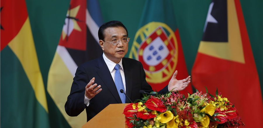 Premier Li Keqiang officially launches a service platform for trade cooperation between China and Portuguese-speaking countries.