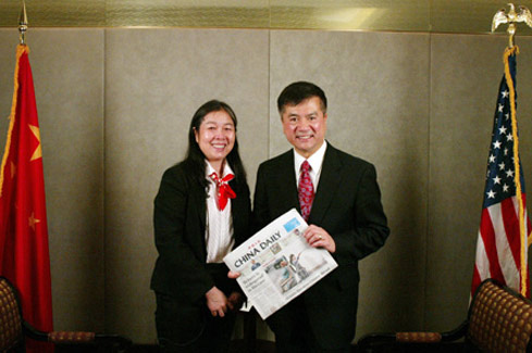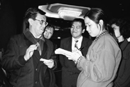 Family members of Li Xing, including her father Li Jiasong (5th L), mother Huang Huifang (4th R) and husband Sun Chenbei (5th R), and China Daily colleagues, including Wang Hao (6th L), board member of China Daily, and Sun Shangwu (first L), China Daily's assistant editor-in-chief, are seen together with Li Xing's ash and picture in Capital International Airport in Beijing Aug 14. Li Xing's ash arrived at the airport Sunday night. Li Xing, China Daily's assistant editor-in-chief and veteran columnist, died of a cerebral hemorrhage on Aug 7 in Washington DC, US. She was 54. [Photo/chinadaily.com.cn]