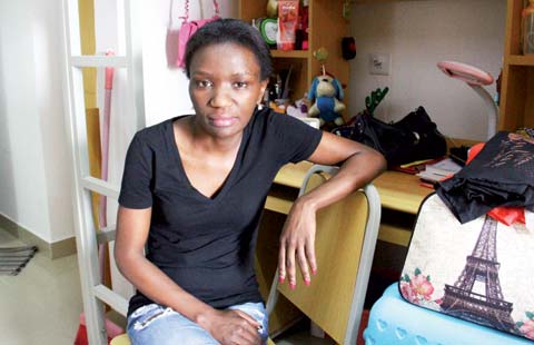 Angelina Dodissea Alberto Gomes, an Angolan, says in Chinese, "You're going to study in China and get a better job back home after you graduate."