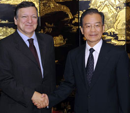 Chinese Premier Wen Jiabao met here Sunday afternoon with the European Commission President Jose Manuel Barroso ahead of the 12th China-European Union (EU) summit.