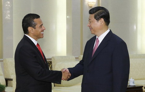 Chinese President Xi Jinping met with Antonio Villaraigosa, mayor of Los Angeles on Tuesday in Beijing.