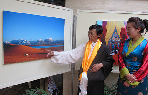 Tibetan photographers participating in an exhibition of their work in Lhasa, the capital of the Tibet autonomous region, on July 12 said the show is a gift to the mark the 50th anniversary of the region's founding.