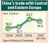 In 2006, China's trade with 13 countries in Central and Eastern Europe more than doubled from two years earlier to reach $22.66 billion, according to General Administration of Customs statistics.