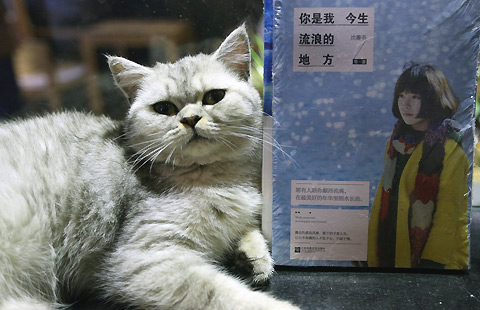 A store that combines a cat café with a book shop opened to the public on Nov 29, 2014 in Nanjing, the first of its kind in China.