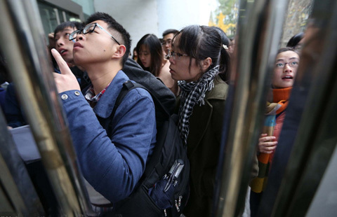 National civil service applicants on their way to take the exam in Nanjing, East China's Jiangsu province, on Nov 30, 2014.