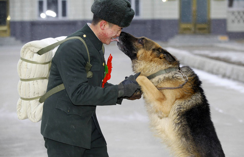 Xiong Xing, a Chinese soldier stationed on border with Russia in Heihe, Northeast China's Heilongjiang province, retired on November 30, 2014.