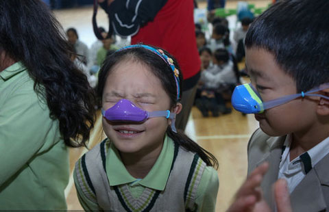 A school in Shanghai has issued a new type of smog-proof nasal mask to pupils amid growing concern over severe smog conditions there earlier this month.