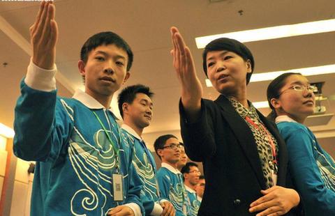 Etiquette and security training is conpulsary for the 7,000 students in Harbin Air Service Secondary Vocational School everyday. They can get into an air company after no less than 520-hour traning.