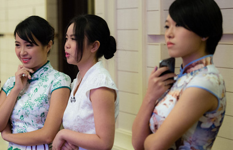 Contestants wear chi-pao in the final of 'Woman who has both ability and integrity' in Guangzhou, Guangdong province, Sept 27, 2014. Ten of 200 entrants reached the final after two months' selection.
